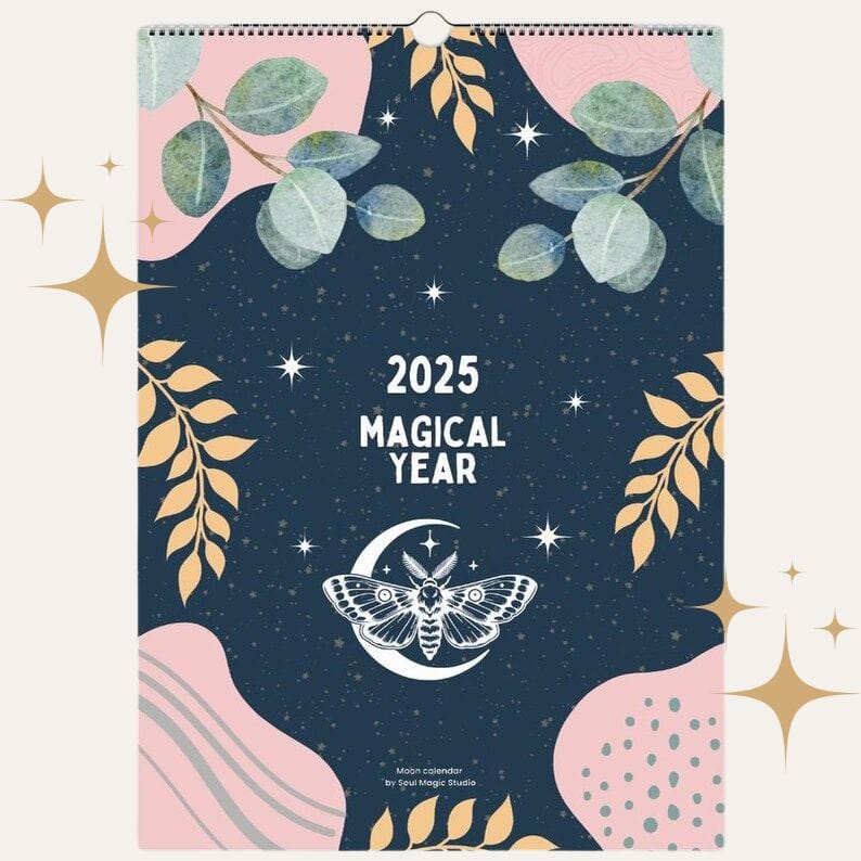The calendar also includes key dates from the Wheel of the Year, celebrating seasonal festivals and the changing energies throughout the year. Perfect for anyone seeking to cultivate mindfulness, find inspiration, and connect with the magic around them, this calendar is your companion for a transformative 2025.